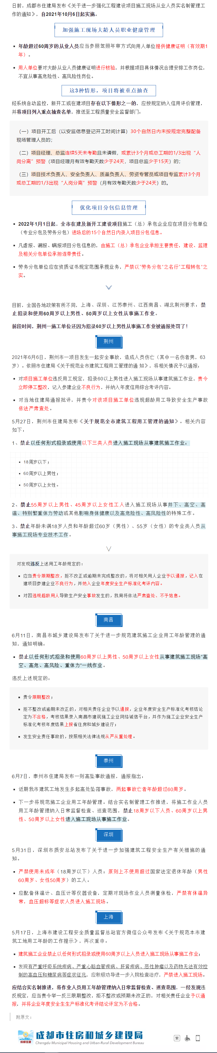 10月6日起,施工現(xiàn)場60周歲以上人員需提供健康證明(有效期1年)方可上崗!該地明確