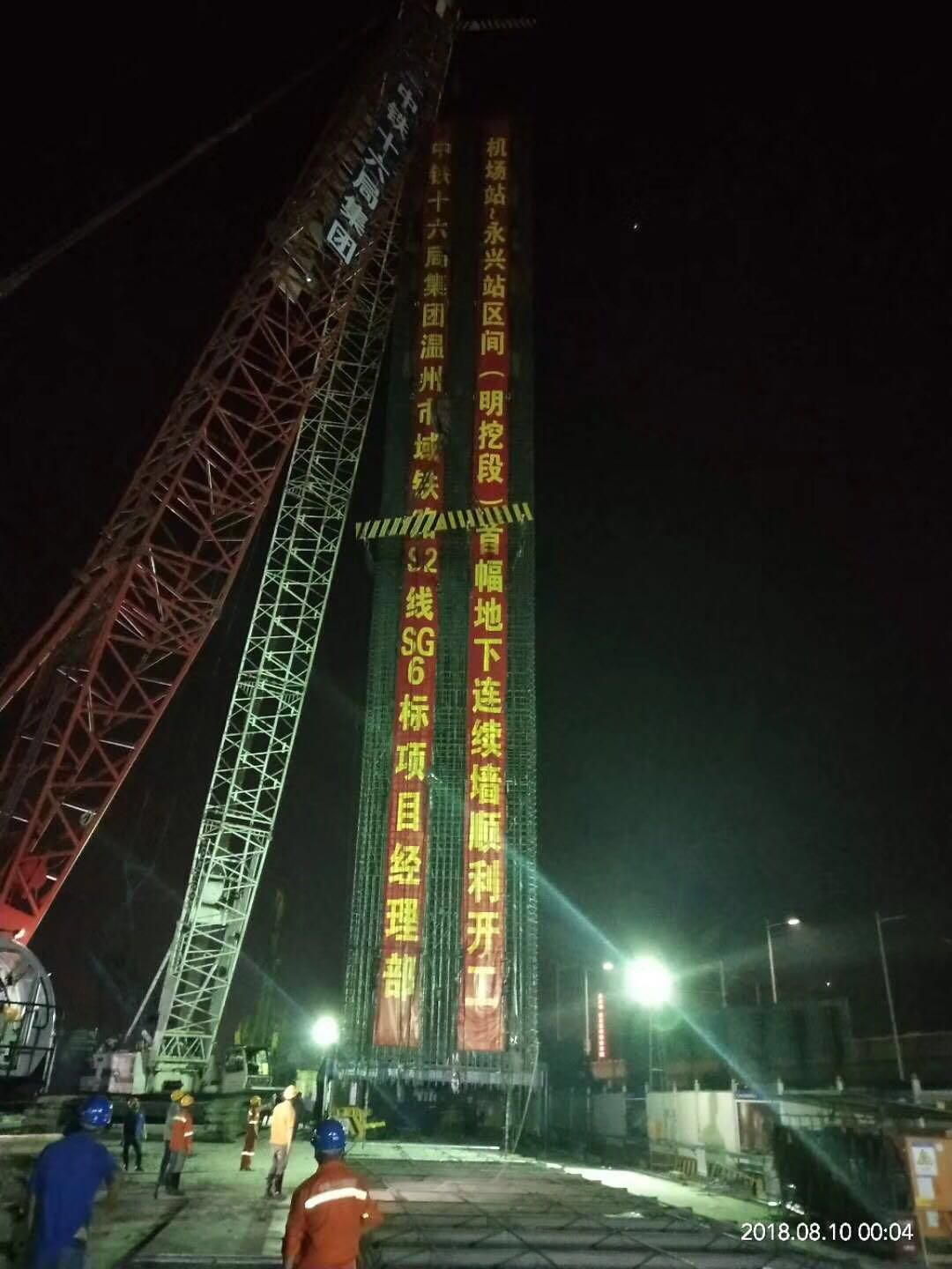 2018年8月10日,溫州市域鐵路S2線 機場站~永興站區(qū)間(明挖段)首幅地下連續(xù)墻順利開工