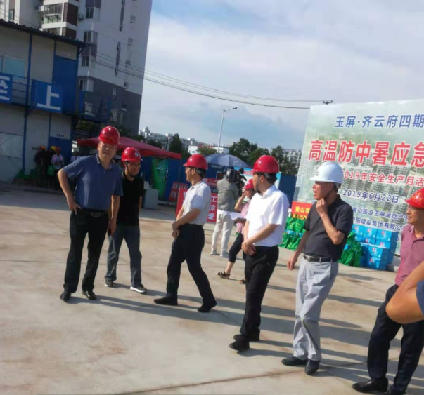 7月29日,黃山市市長孔曉宏帶領市政府工作人員冒著高溫來到由我司監(jiān)理的玉屏齊云府四期工程項目現(xiàn)場,對一線工人、監(jiān)理人員開展送清涼慰問。詳細詢問和了解職工們的生產(chǎn)、生活等情況,加強安全教育,進一步提升建筑工人、監(jiān)理人員高溫期間的自我保護意識,落實各項高溫季節(jié)勞動保護規(guī)定,切實維護職工的健康權(quán)益;并對職工冒酷暑、戰(zhàn)高溫堅守崗位作貢獻表示敬意。同時對企業(yè)在項目建設中的難題進行詳細詢問和深入了解,要求企業(yè)合理安排作業(yè)時間,采取“錯時施工”,避開高溫時段,發(fā)放足量的防暑降溫用品,供應充足衛(wèi)生的飲用水,嚴禁違章作業(yè)和高溫時段作業(yè),確保高溫期間的施工安全。