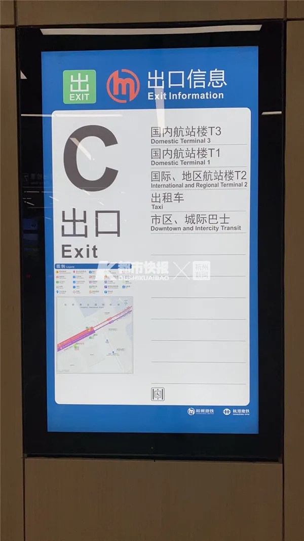 記者到達(dá)蕭山國際機(jī)場站后,從A口出地鐵站,大約步行三分鐘就到航站樓了。