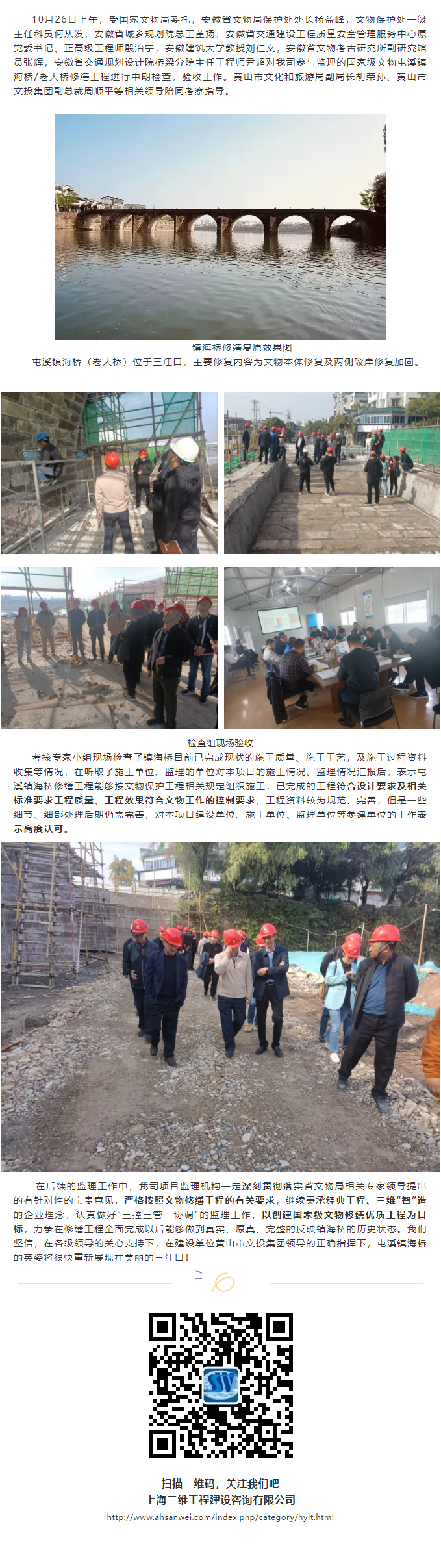我司參與監(jiān)理的國(guó)家級(jí)文物屯溪鎮(zhèn)海橋/老大橋修繕工程順利通過省文物局中期驗(yàn)收