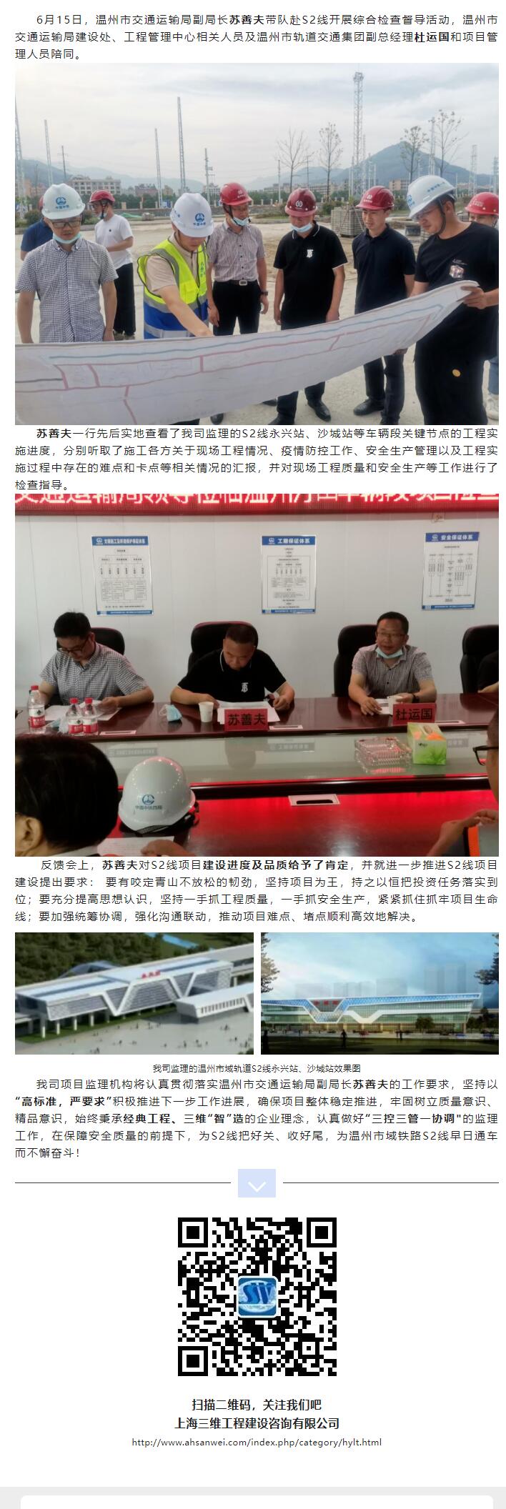 溫州市交通運(yùn)輸局副局長(zhǎng)蘇善夫赴我司參與的S2線開(kāi)展綜合檢查督導(dǎo)