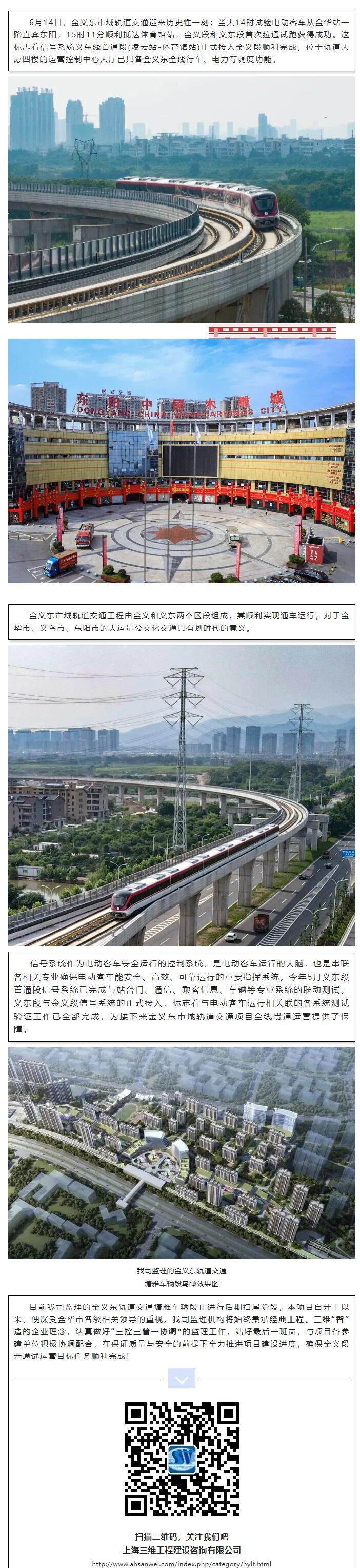 我司參與監(jiān)理的金義東市域軌道交通金義段-義東段貫通試跑成功