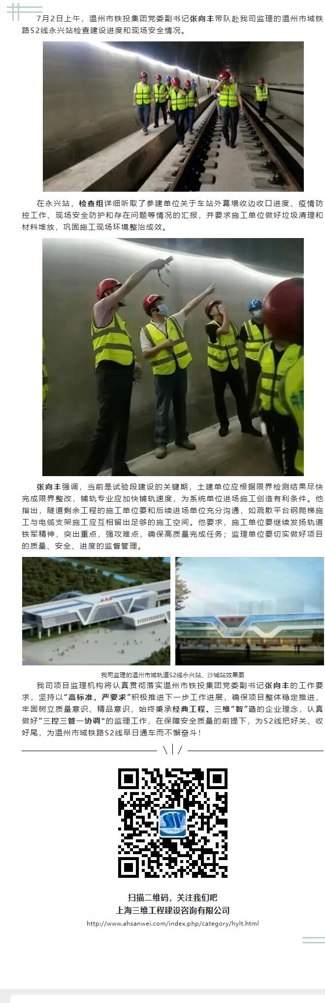 溫州市鐵投集團黨委副書記張向豐帶隊赴我司監(jiān)理的溫州市域鐵路S2線永興站檢查建設(shè)進度和現(xiàn)場安全情況